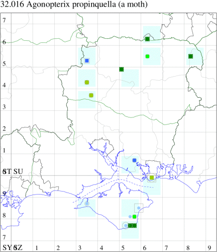 Local in waste ground and rough grassland throughout much of England, Wales, southern Scotland and southern Ireland. In Hampshire and on the Isle of Wight there have been very few recent records of this species, and it has been recorded in recent years only from Sherborne St John and Blagden Lodge, Wildhern, in the north of the county, and Shanklin on the Isle of Wight. Wingspan 16-19 mm. The most likely confusion species is A. subpropinquella, which see for differences. Larva feeds on Creeping Thistle and Spear Thistle, living within a spun or rolled leaf.