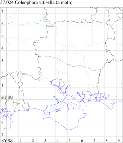 Nationally scarce (Na) in pine woodland, Calluna heathland and moorland in two well-separated areas: the Pennine Range, extending westwards into Lancashire and Cheshire and just into Wales in Flintshire, and southwards to northern Warwickshire; and in western central Scotland and the Scottish Highlands (MBGBI Vol 3). Unlikely to be recorded in Hampshire or on the Isle of Wight. Wingspan male 11-13 mm, female 10-12 mm. Like many of the Coleophora, imagines are virtually impossible to identify without recourse to dissection, and the larvae, which live in cases of characteristic form and which can sometimes be found on the foodplant, may be easier to identify by comparison against a reference collection. Larva mines leaves of Cowberry, living within a movable case, over-wintering twice.