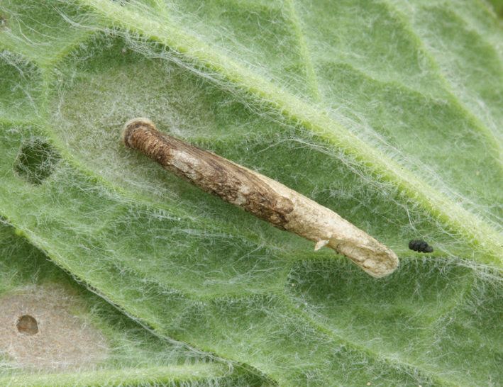 Coleophora, imagines are virtually impossible to identify without recourse to dissection, and the larvae, which live in cases of characteristic form and which can sometimes be found on the foodplant, may be easier to identify by comparison against a reference collection. Larva mines leaves of Hemp-agrimony, Common Fleabane and Ploughman's-spikenard, living within a movable case.
