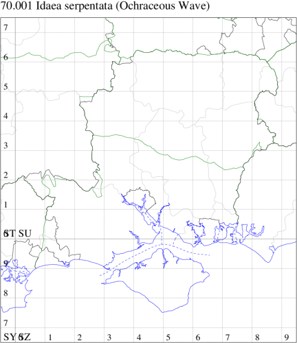 Bright Wave I. ochrata. Larva feeds on herbaceous plants and various grasses, no evidence of breeding in the UK.