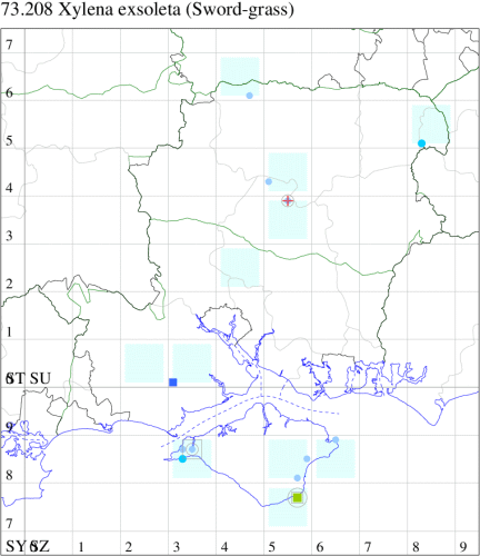 Nationally scarce (Nb) on moorland, rough grassland and upland woodland, generally restricted to uplands in parts of Scotland, Shetland and northern England, rare elsewhere, a priority species under the UK Biodiversity Action Plan. In Hampshire and on the Isle of Wight formerly resident in all three vice-counties, now an extremely scarce presumed immigrant: the only recent record is of one taken at sugar at Freshwater in October 1978. Wingspan 58-68 mm. There is sometimes a very dark median subdorsal patch which can cause confusion with