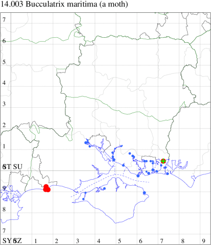 Nationally scarce (Nb) in saltmarshes throughout much of England and Wales, predominantly coastal. In Hampshire virtually restricted to the coast in the south-east of the county (it is regularly reported from the Southsea area), with just a handful of records on the Isle of Wight, predominantly along the north-west coast. The absence of records along the New Forest coast is surprising and fieldwork there could be rewarded. Wingspan 8-9 mm. Larva mines leaves of Sea Aster.
