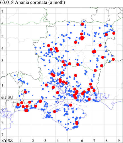 VC11: Earliest: Broughton Down NNR, 04 May, 1 (BRob) Latest: Waterlooville, 08 Sep, 1 (DWhe) Max count: Curdridge, 12 Aug, 4 (CGree)