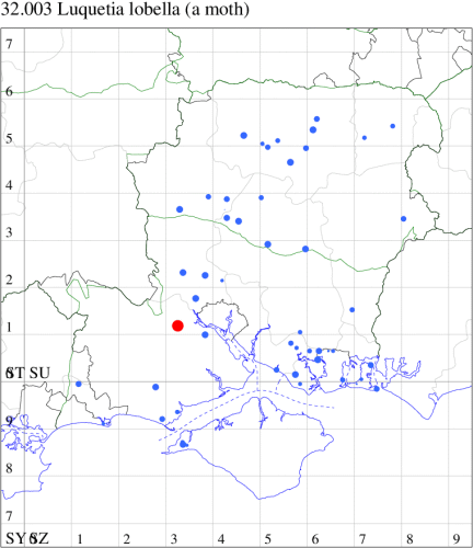 VC11: Beaulieu Heath, NF, larval spinning, 70, field obs., one adult reared, 28 Jun; Sinah Common, one, at dusk, 23 Jul (AMD)