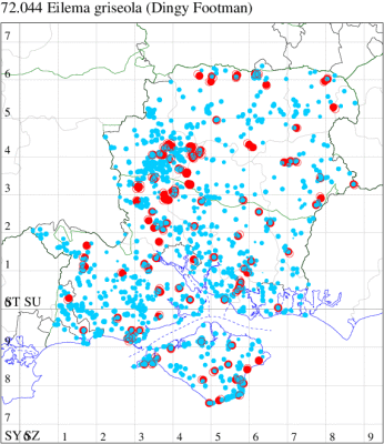 Nationally scarce (Nb) on sea cliffs and shingle beaches, and inland on quarries, from Kent to Anglesey. In Hampshire and on the Isle of Wight first recorded on the Island in 1992 and, on the mainland, in 1997, now increasingly seen in the north-east of the county where it is spreading from the east. Wingspan 28-35 mm. Very similar to Scarce Footman E. complana, but hindwing very pale yellowish grey (ochreous yellow in Scarce Footman), a feature which is difficult to see on live specimens. Larva feeds on various lichens, often on rocks.