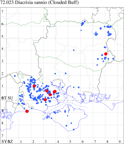VC10: Earliest: Parkhurst, 19 Jul, 15 (TJN, IMer, DCoo, LFom) Latest: West High Down quarries, 17 Sep, 3 (IOu) Max count: Shanklin, 01 Aug, 51 (IOu)