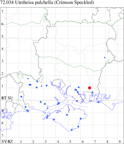 VC11: Portsmouth, three, 29 May; one, 02 Jun (IRT); North Hayling, present, field obs., 27 May (KAnd); Northney, Hayling Island, present, 28 May (JWP); Hurn, one, 25 May (MJef); Hengistbury Head NNR, one, 30 May (BKin det. MJef); one, 06 Jun (RPH); Hengistbury Head, larva, one, field obs., 24 Mar (SWes det. RPH); Hengistbury Head NNR, one, field obs., 05 Jun (PBoa); Hengistbury Head, one, 20 May (BKin); four, 03 Jun; three, 03 Jun (MJef); Southsea, present, 01 Jun (KAnd)