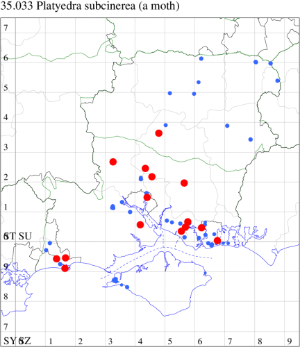 For species seen in 2024 that had less than or equal to 100 records, full details are included; for more common species, the earliest, latest and highest count by vice-county are shown. The narrative for each species is taken from the main Hantsmoths website, and it is possible that some information on abundance and occurrence can get out of date, as it is impossible to keep up with all changes; however it should give a good introduction to each species. The tables in each species account summarise the previous status, and that for the current year.