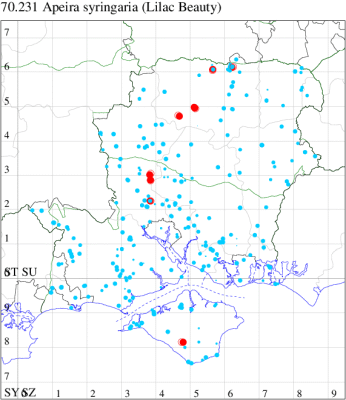 VC10: Earliest: Wheelers Bay, 09 Apr, 1 (ABu) Latest: Shanklin, 18 Aug, 1 (IOu) Max count: Parkhurst Forest, 28 Jul, 8 (IOu)