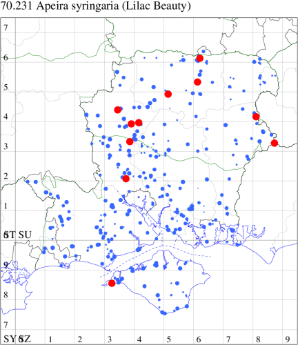 VC10: Earliest: Shanklin, 06 May, 1 (IOu) Latest: Freshwater Bay, 01 Aug, 1 (SDav) Max count: Haseley Manor, 16 Jun, 5 (IOu)
