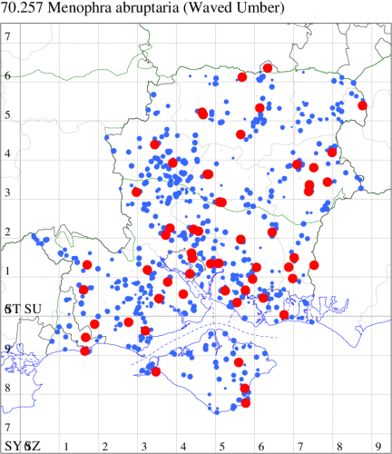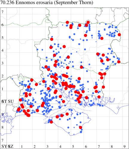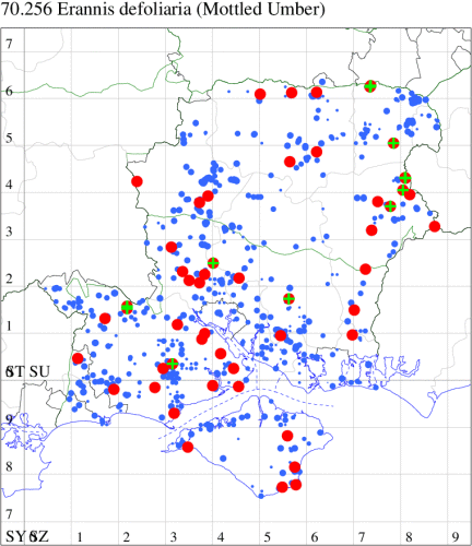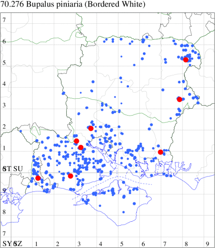 VC11: Earliest: Botley Wood, 15 Mar, 1 (F.M.G.) Latest: Waterlooville, 08 Sep, 1 (DWhe) Max count: Waterlooville, 27 Aug, 14 (DWhe)