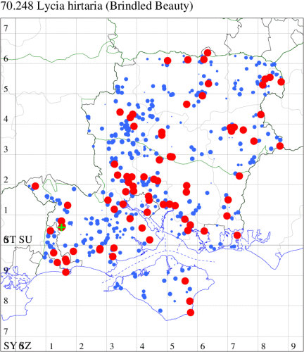 VC11: Marchwood, one, 17 Sep (CTha); Lee-on-Solent, one, 31 Aug; one, 02 Sep; one, 03 Sep; one, 06 Sep; one, 07 Sep; one, 08 Sep (IHrg); Hengistbury Head, two, 06 Jun (RPH); Hengistbury Head NNR, four, 15 May (MJef); three, 17 May (RPH); three, 18 May; four, 19 May; four, 20 May (MJef); one, 22 May (BKin det. MJef); six, 23 May (RPH); three, 30 May (BKin det. MJef); one, 02 Jun (RPH); two, 10 Jun (BKin det. MJef); one, 12 Jun (MJef); one, 11 Aug; one, 12 Aug (MoTay det. MJef); one, 14 Aug (RPH); two, 27 Aug (HengistH det. MJef); one, 29 Aug (MJef); one, 03 Sep (HengistH det. MJef); one, 14 Sep (BKin det. MJef); four, 15 Sep; one, 18 Sep (HengistH det. MJef); Hengistbury Head, four, 27 Aug (MJef); Pennington, one, 01 Sep (RFC)