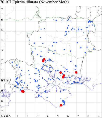 VC10: Whitwell Road, Ventnor, one, gen det, 10 Nov (MGT); Little Duxmore, present, 04 Nov (HMak); Shanklin, one, 04 Nov; three, 05 Nov; two, 06 Nov; four, 10 Nov (IOu);