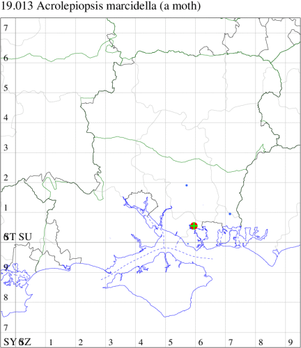 Rare (proposed as a future Red Data Book species) and restricted to deciduous woodland in the coastal counties of south-eastern England. In Hampshire known from the 19th Century, thereafter not recorded until 1986, with an increase in records from 1995 onwards, when fairly frequent in the south of the county. Not recorded from the Isle of Wight to date. Wingspan 13-15 mm. Larva mines fruit of Butcher's-broom.