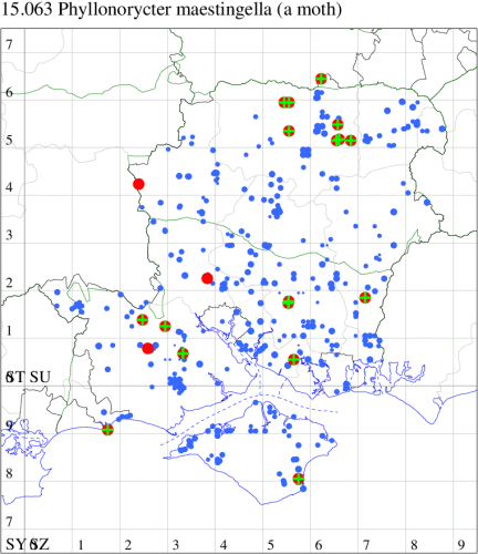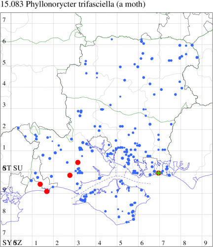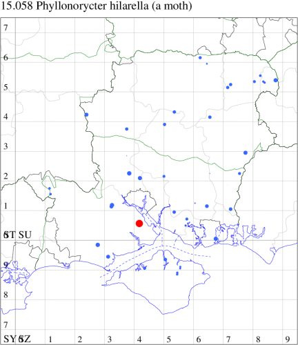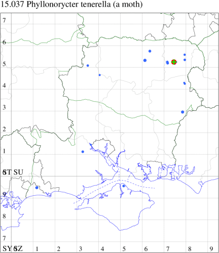 VC11: Swaythling, Southampton, one, 30 Aug (MEdg); Itchen Valley CP, one, 19 Jul (CTha); Stubbington, two, 25 Oct; one, 01 Nov (DPH); Lee-on-Solent, one, 02 Jul (IHrg); Fareham, two, 15 Oct (IMcP); Cams Bay, Fareham, mine, present, 08 Sep (AMD); Waterlooville, two, 13 Aug; one, 26 Aug; one, 13 Sep; one, 24 Sep; one, 28 Oct; one, 31 Oct; one, 10 Nov (DWhe); West Meon, mine, present, on Fagus, 10 Jun; Oxenbourne Down, mine, present, 04 Oct (AMD); Christchurch: Cross Way, one, 16 Oct; one, 22 Oct (LPyk); Wick Fields, Hengistbury Head, vacated mine, present, several, 19 Feb; Hengistbury Head, mine, present, on English Oak, 22 Aug (MJef); vacated mine, present, 03 Sep; Hengistbury Head NNR, mine, present, on beech, 22 Oct (RPH det. MJef); mine, present, quercus ilex, 27 Oct (JOug); Sway, one, 30 Jul; one, 22 Oct; one, 29 Oct (SKee); Pennington, one, 12 Apr (RFC); Browndown, five, field obs., 30 Apr; five, field obs., 01 May (IHrg); Sinah Common, mine, present, on Quercus ilex, 12 Jan; three, at dusk, 07 Nov (AMD);