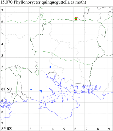 VC11: Peartree Green, Southampton, mine, present, 06 Oct; Stanpit Marsh LNR, mine, present, on oak, 04 Oct; larva, five, field obs., on oak, 04 Oct (PAB); Sway, one, 23 Jul (SKee);