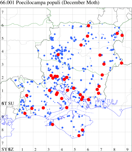 VC12: Chilbolton, one, 15 Dec (GCE); North Waltham, one, 10 Nov; one, 24 Nov; six, 30 Nov; three, 15 Dec (AJon); Basingstoke, three, 29 Nov; four, 30 Nov (MJW); Pamber Forest, one, 05 Dec (GJD); Alton, one, 04 Nov (DBO); Noar Hill HIWWT NR, Selborne, two, 08 Nov (AMD, FHay det. AMD); Hammer Vale, Woolmer, one, 31 Oct; one, 02 Nov; one, 29 Nov; five, 30 Nov; one, 15 Dec (ASwa); Farnborough, one, 16 Dec (MThmp); one, 30 Nov (KBW)
