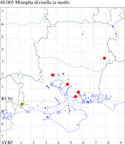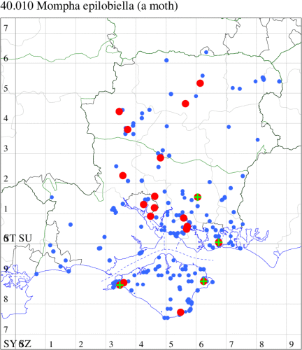 VC11: Fishlake Meadows, Romsey, two, field obs., 05 May (DAS); Netley, one, field obs., 09 Feb (ARC); Bevois Valley, Southampton, one, field obs., 03 May (MCrei); Sholing, one, 09 Feb (ARC); Itchen Valley C.P., one, 19 Jul (F.M.G.); Winchester, present, field obs., 18 May (JOug); Funtley, one, 01 Jul; one, 19 Jul (TDC); Fareham, one, 24 Jun (ADT); one, 02 Jul; two, 11 Jul; one, 17 Jul (IMcP); Milton Common, larval feeding signs, present, field obs., multiple spinnings on hoary willowherb. At least one had a larva, 02 Jul (IRT); two, field obs., tapped from hoary willowherb, 02 Jul (RJD); Portsmouth, one, 12 Apr; one, 07 May; one, 09 May; one, 14 Jul; one, 16 Jul (IRT); St Clair's Meadow NR, Droxford, larval spinning, present, field obs., large numbers of spun shoots on Epilobium hirsutum, larvae found in two, 03 Jun (RJD); Pennington, one, 19 Mar (RFC);