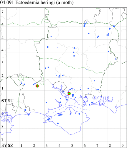 VC11: Botley Wood, mine, one, 12 Jul (DPH); Bishop's Waltham, mine, one, on Hypericum, 27 Jun (DTru); Oxenbourne Down, vacated mine, present, 04 Oct (AMD)