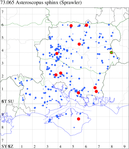 VC12: Earliest: Upper Inhams Copse, Pamber Forest, 03 Oct, 1 (GJD) Latest: North Waltham, 10 Nov, 1 (AJon) Max count: Wonston, 24 Oct, 4 (GCE)