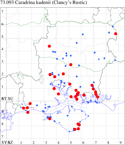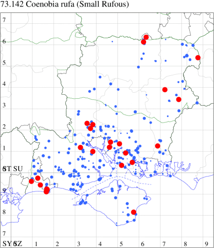 VC11: Earliest: Hengistbury Head, 10 May, 1 (MJef) Latest: Dibden Purlieu, 01 Dec, 1 (RAC) Max count: Pennington, 09 Oct, 11 (RFC)