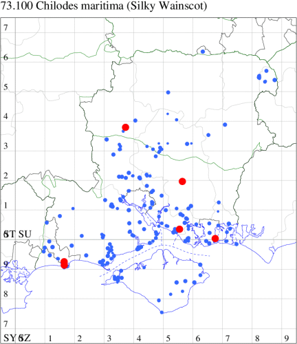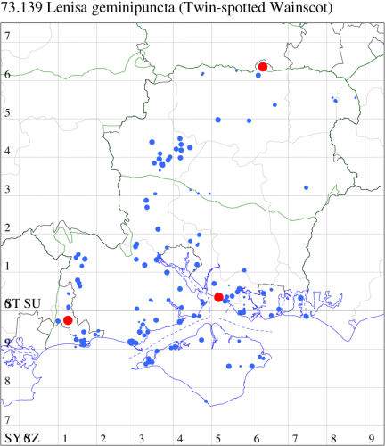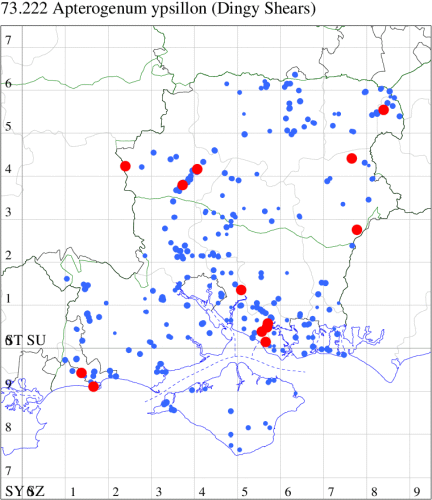 VC10: Earliest: Shanklin, 30 May, 5 (IOu) Latest: Great Thorness, 22 Sep, 1 (BriJon) Max count: Shanklin Upper Chine, 02 Sep, 26 (IOu)
