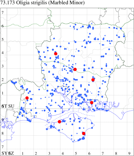 VC12: Earliest: Great Haughurst Copse, Axmansford, 28 May, 1 (ACB) Latest: Hammer Vale, Woolmer, 29 Aug, 1 (ASwa) Max count: Chawton, 04 Jul, 21 (DAS)