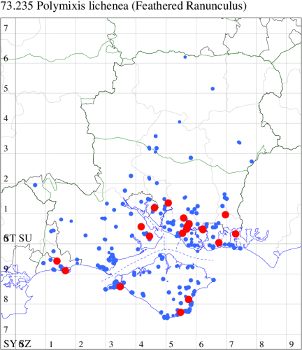 VC11: Earliest: Portsmouth, 07 May, 1 (IRT) Latest: Cromarty Pond area, Lord's Hill, 09 Aug, 2 (JClx) Max count: Christchurch: Cross Way, 17 Jun, 6 (LPyk)