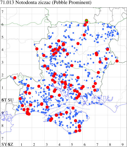VC11: Earliest: Allbrook, 05 Apr, 1 (SIng) Latest: Christchurch: Cross Way, 18 Aug, 1 (LPyk) Max count: Hengistbury Head NNR, 01 Aug, 5 (HengistH)