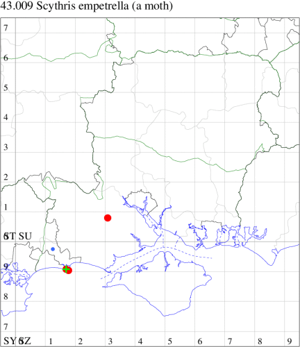 For the maps, all records prior to 2024 are shown by a blue dot (the larger the dot, the more recent), with the current year's records shown in red. As previous records are superimposed on any report for 2024, new sites have greater emphasis (i.e. will show as 'more red').