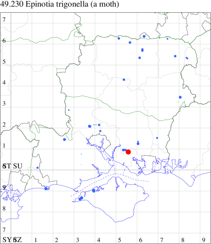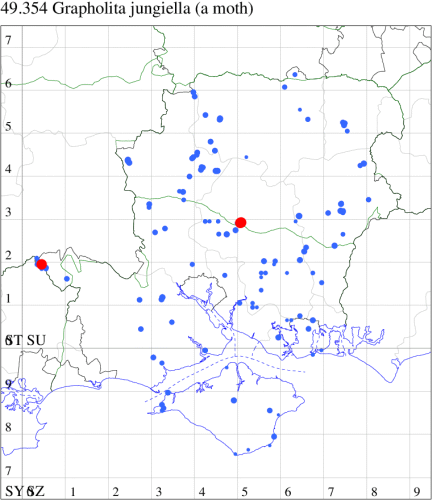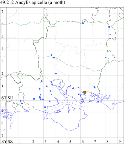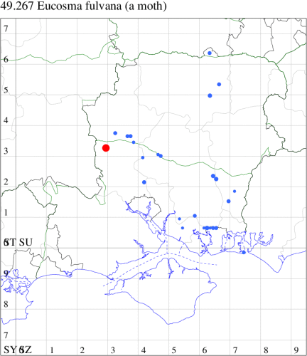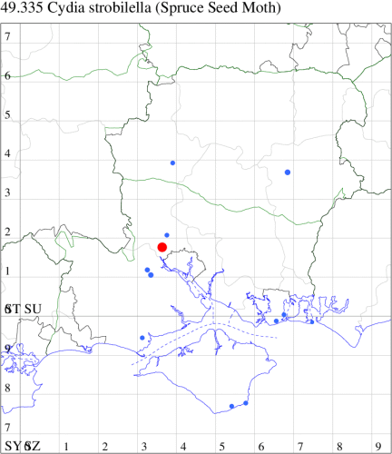 VC11: Marchwood, one, 03 Aug (TDCh); Romsey, one, 28 Aug (MJB); one, to pheromone lure, to FUN lure at 10.00, 12 May; one, to pheromone lure, to HYL lure, male, gen. det., 31 Jul; one, to pheromone lure, to HYL lure, male, gen. det., 11 Aug (NRJ det. DJG); Swaythling, Southampton, one, 24 Jun (MEdg); Allbrook, one, 16 Jun; one, 17 Jul; one, 23 Jul (SIng); Brownwich Cliffs, Titchfield, one, female det gen, 26 Jul (F.M.G. det. RJD); Stubbington, one, 25 Jun (DPH); Funtley, one, 29 May (TDC); Lee-on-Solent, one, to pheromone lure, jAN (1) & FUN (2) Lures, 30 Jun; one, 30 Jun; one, to pheromone lure, fUN Lure, 06 Jul; one, to pheromone lure, fUN Lure, 11 Jul (IHrg); Fareham, one, det gen, 26 Jun (MLO det. RJD); Portchester, two, 26 Jun (DH-J); Waterlooville, one, aRG lure, 29 May; one, 17 Jul (DWhe); Muscliffe, one, 19 Jun (CMur,MLan det. CMur); New Milton, one, 29 Jul (RPH); Sway, one, 19 Jul (SKee); Pennington, one, 09 Jul (RFC);