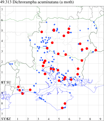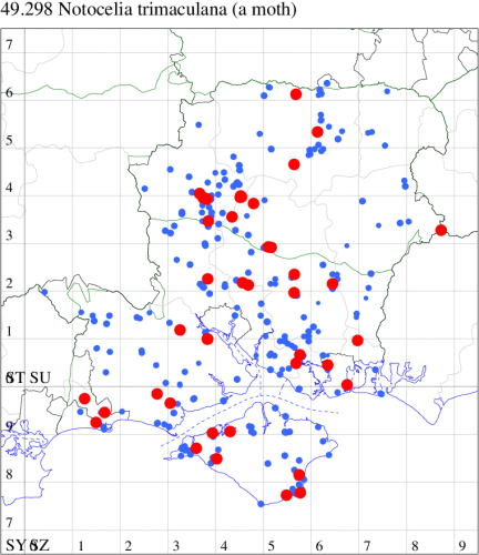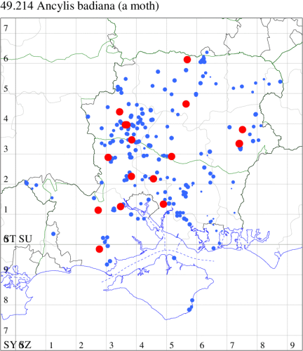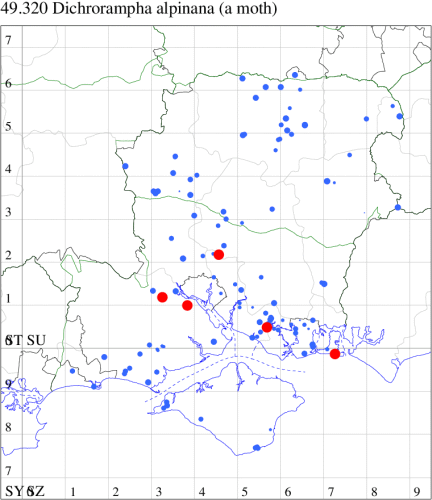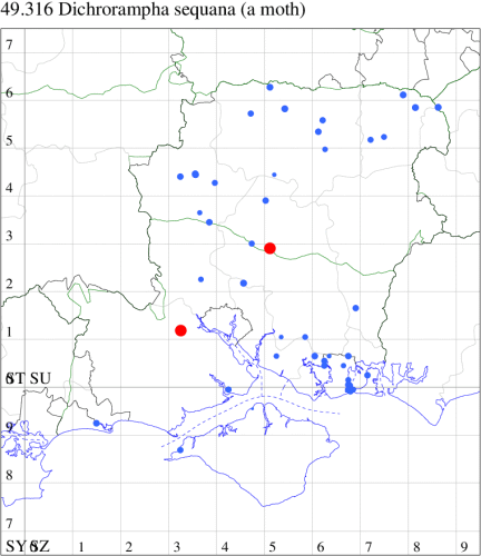 VC11: Romsey, one, 17 Jun (MJB); Allbrook, one, 18 Jul; one, 14 Aug (SIng); Funtley, one, 01 Jul (TDC); Waterlooville, one, 02 Jun; five, 04 Jun (DWhe); Merritown Heath, one, 29 Jun (DFoo); Hengistbury Head, three, 27 Aug; one, 03 Jun (MJef);