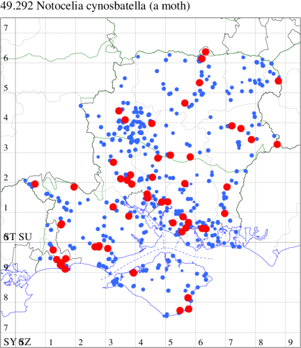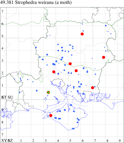 VC11: Earliest: Pennington, 17 May, 1 (MHay) Latest: Botley, 15 Sep, 1 (SLB) Max count: Hengistbury Head, 03 Jun, 5 (MJef)