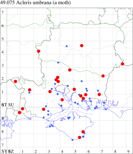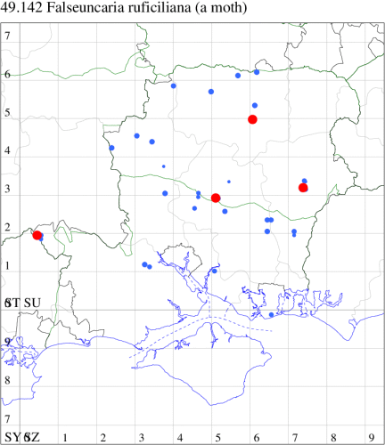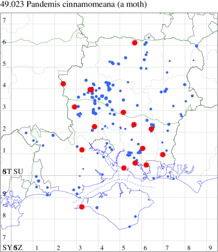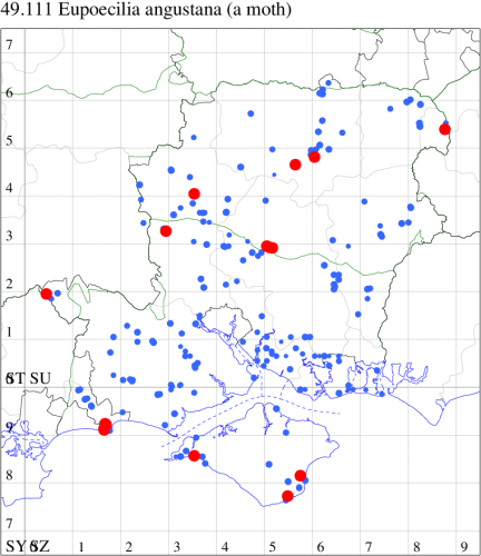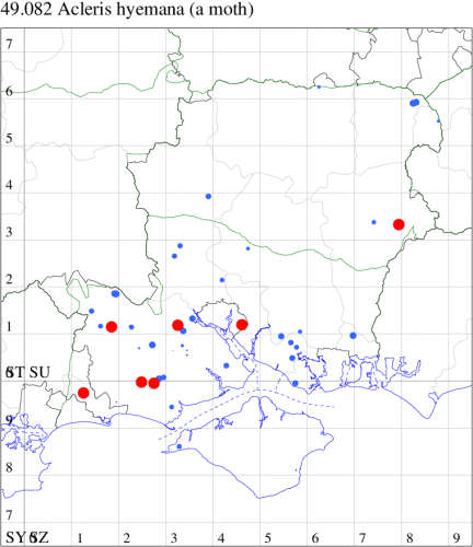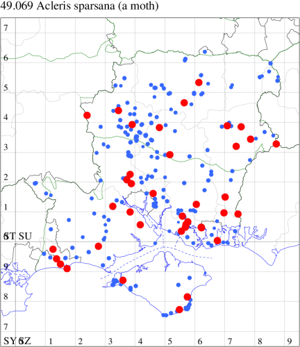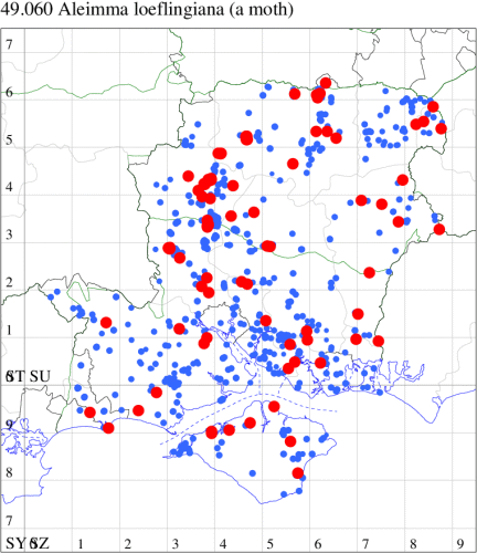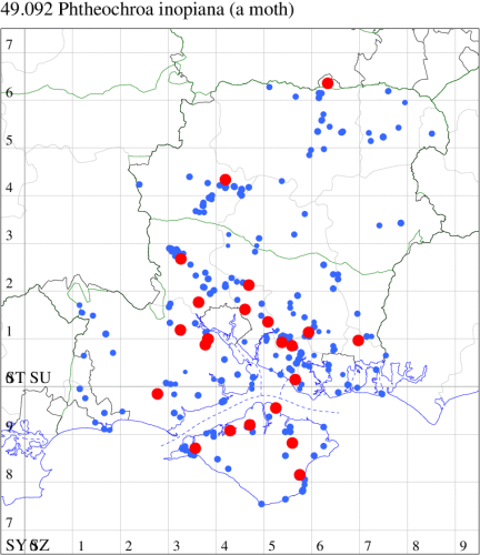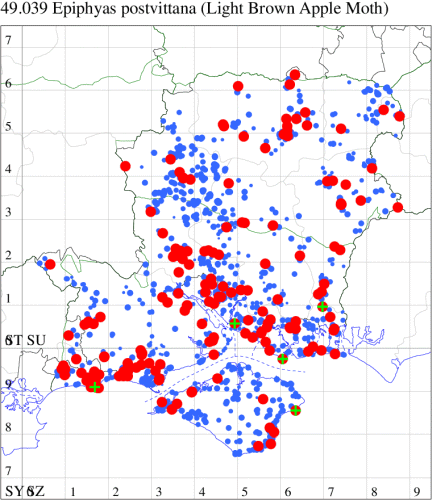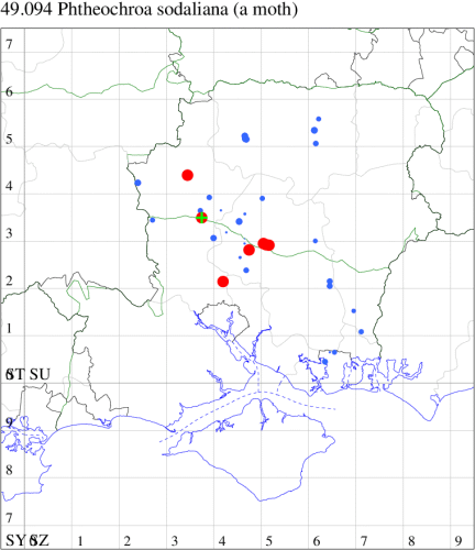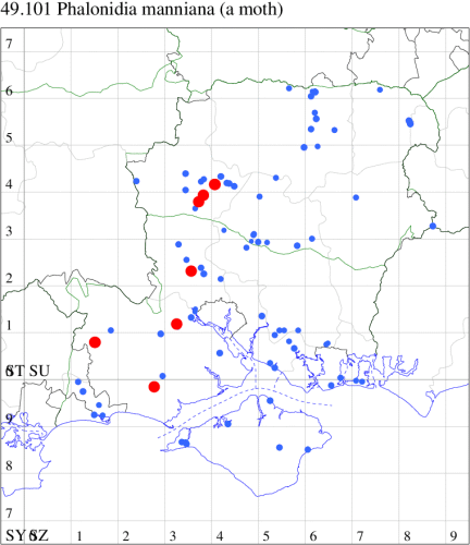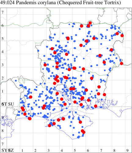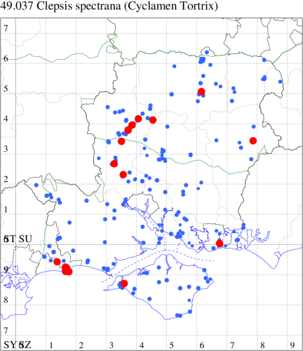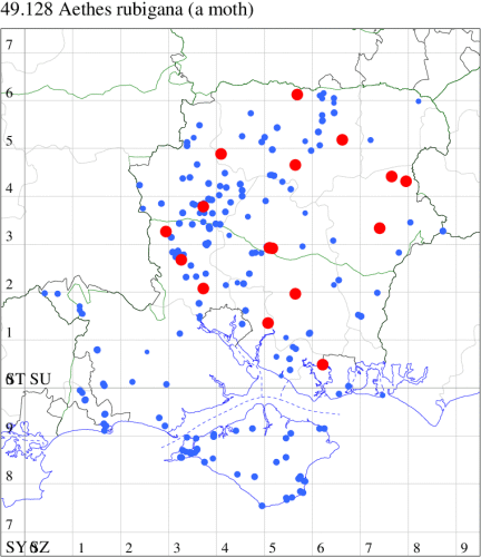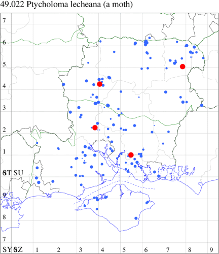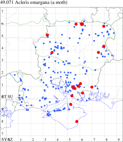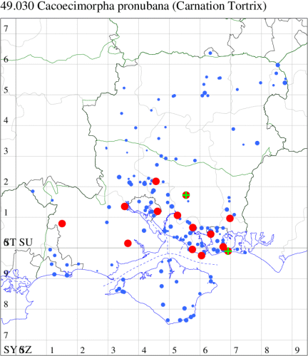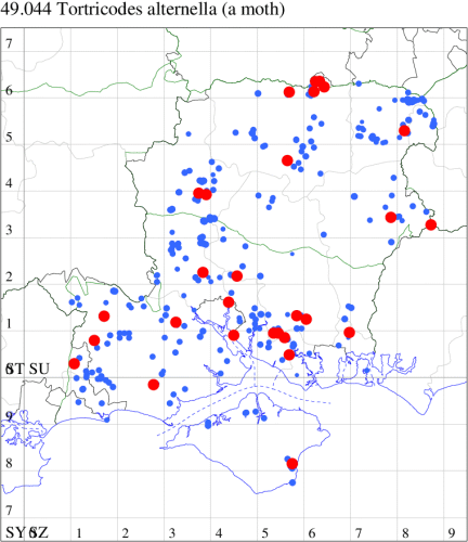 VC11: Romsey, one, 26 Jul (MJB); one, 30 Jul (NRJ); Hurn, one, 01 Aug; Hengistbury Head NNR, one, 05 Aug (MJef); one, 11 Aug (MoTay det. MJef); Burton, nr Christchurch, one, 12 Jul (JStw);