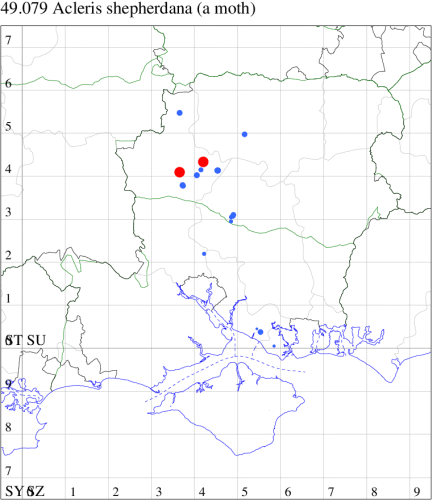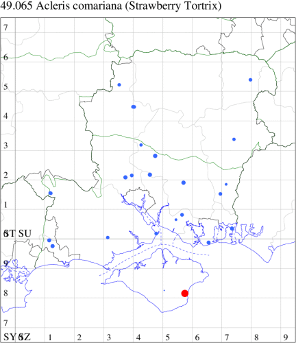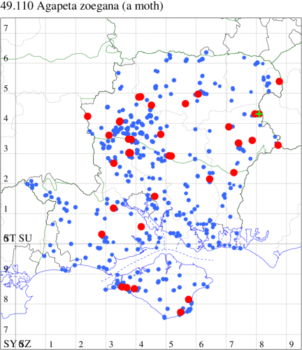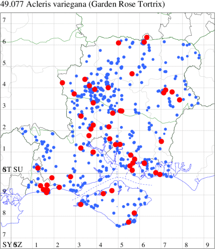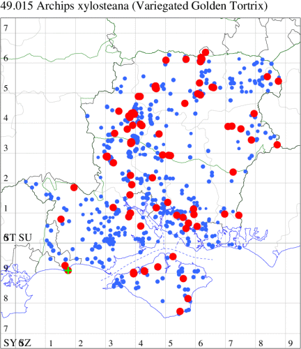 VC10: Earliest: Bonchurch, 15 Jun, 1 (JHa) Latest: Shanklin, 17 Sep, 1 (IOu) Max count: Osborne Wood, 01 Jul, 5 (IOu)